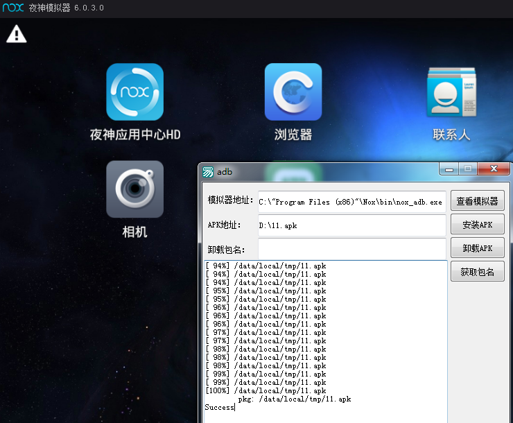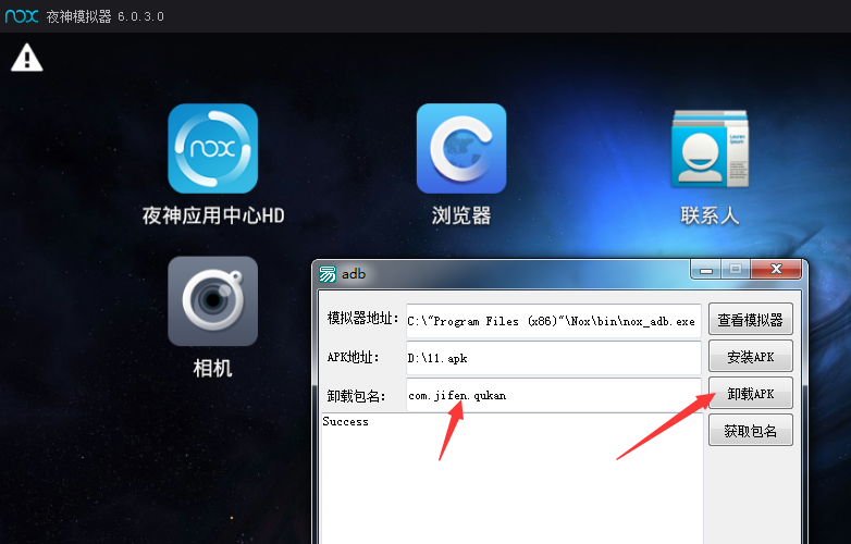 进行操作:1、安装APK 2、卸载APK 3、获取包名 4、查看连接模拟器